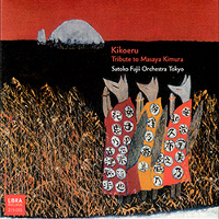 Alister Spence also is somewhat restrained by the sound-space medium of the duets. He’s a veteran pianist-synthesizer ace-composer from Australia who among other things has played in the dynamic 1990s quintet Clarion Fracture Zone. He and Fujii have worked together several times this century, and Imagine Meeting You Here is his long suite for her 15-piece band. The lovely, lonely shakuhachi flute opens; the rest is all Western instruments. Solos are brief apart from Hiroshi Funato’s virtuoso bass solo that begins “Part 4 (Here).” “Part 2 (Meeting)” is especially clever, a fugue that begins as variations on a six-beat march with displaced accents and finally becomes a band improvisation. Lots of long chords, repeated chords, and slowly moving lines here. It’s almost all weighty, Wagnerian, and it could be oppressive except for the orchestra colors (love those brass-section trills), which are always full and rich. Satoko Fujii is seldom heard in her Orchestra Kobe disc and doesn’t play at all in Kikoeru. It’s the last of her 2018, 60th birthday, album-a-month project. The CD is a tribute to the late tenor saxophonist Masaya Kimura and the long, slow “Farewell” is a funeral piece with a sorrowing big-vibrato alto sax melody, a grandly mounted tenor sax sermon, and a fine melodic bass solo (Toshiki Nagata). The so very quiet “Kikoeru” may be a sequel, including an extreme, believe-it-or-not shakuhachi-sounding trombone passage. “Amadare” is a one-note unison band vamp for ten minutes and a terrific, growly trumpet solo – Natsuki Tamura? Too bad the soloists on these CDs aren’t identified. Finally, in the fourth piece “Neppa” the band cooks, a tenorist erupts into rough tones and sheets of sound and a zooming trombonist suggests a freaky Jimmy Cleveland. These four are Fujii’s pieces. Tamura composed the last two, which are settings for improvisers: The enjoyably rowdy “Stop and Go” with many duets, “Ah Dadada” with singers and a scat-hollerer chase and duet. They definitely bring the album a happy ending. Nowadays the logistics of big band music – composing it, recruiting musicians to rehearse it, getting it performed – are more formidable than ever. God bless Fujii and Tamura for their persistence and for her large body of work, especially her Orchestras. By now they’re almost alone. Who else in 2019 has been at it so long and has created so much valuable big-band music along the way?