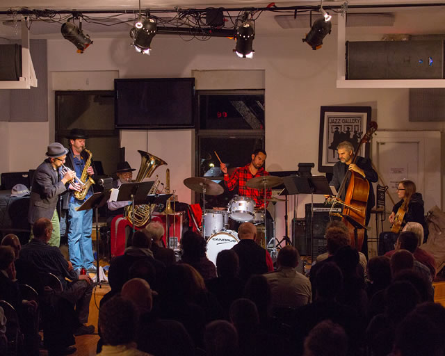 a column by ![]() Taylor Ho Bynum Sextet ©2013 Scott Friedlander 2013 I master pieces of it. – Gertrude Stein Composition and improvisation, or some things just like them, get us through the day, a dialogue between the comfort and irritation of the known, the ritualized, the planned, and the possibility and delivery of a subtle alteration or sudden development (What was that sound?) that arises in the midst of the feared-to-be-predictable. Every living moment is balanced between the known and the unknown, the structured and the structure-free, and jazz has historically provided a forum for focusing on that relationship, on listening to the shifting nuances in the dialogue. Taylor Ho Bynum has just released a work called Navigation (Firehouse 12) that’s particularly focused on the possibility of the moment and the relationships between the composed and the improvised, focused even on the unpredictable consequence of an instant’s choice between the known and unknown. Yesterday, I explained to a student for whom English is a second – or third or fourth – language that you couldn’t have “a different qualities,” and yet as I start to consider Navigation, I realize that Bynum has produced something that belongs to a special category, a masterpieces, a work that can shimmer into new identities, bringing multiple narratives into view. Navigation is insistently plural, documentation of four realizations of a work recorded over two days in December 2012. True to its title, Navigation is a piece about getting from one place to another ... and then another and then another. The composition is worked on a grid with six equidistant points, each an individual piece, with lines connecting every point to every other point. Each Navigation (each further designated as a “Possibility Abstract” followed by a performance number) is a piece that is defined in its realization, not just because it’s a composition that includes improvisation, but as a piece that also includes structural decision-making in its processes. The physical presentation of the four performances is unusual and I think significant. It’s available as a two-LP, two-CD set of versions 10-13, or separately as the two-LP Navigation (Possibility Abstracts 10 and 11 recorded live on December 7, 2012, Firehouse12 04-08-019), and the two-CD “12 and 13” (recorded without an audience on December 8, Firehouse12 04-01-019). Any of the three sets comes with an access code to download all four versions of the piece. The two versions on LP are played by Bynum’s Sextet with Jim Hobbs on alto saxophone, Bill Lowe on trombone and tuba, Mary Halvorson on guitar, Ken Filiano on bass, and Tomas Fujiwara on drums and vibraphone. The two realizations on CD add Chad Taylor on drums and vibraphone as well. A digression... The oddity of the mixed LP/CD format might seem designed to attract collectors, but I think there’s more to it than that, and it’s not necessarily a matter of length. One of the CD versions, “XII,” is 53 minutes long but that’s not absolutely beyond LP capacity. Instead the mixed format suggests the instability that’s at the heart of the work. It’s a work that resists containment. There’s also something about the musical languages of Navigation that resonate with the peculiar status of the LP, as both superannuated and recently rediscovered medium and with the competing convenience of the CD, the download and even the YouTube clip (where one can catch a live performance of Bynum’s previous suite for this sextet, An Apparent Distance). At a time when you can buy a four-foot square, vinyl, totemic replica of an Eric Dolphy LP cover, Bynum’s group’s often engage the traditional language of jazz in an instant by instant scrutiny. That issue of media is worth considering. The dual media set up an oscillation that is central to this work, stressing the ironic relation of media in which substantiality and permanence are strangely at odds. With the return of the LP (prodded as much by the idea that music should have both physical substance and visible character as well as the vibrancy of analogue sound—the LP shouts, “This music matters and is to be realized in real space with real speakers” – the LP, oddly, is now the next thing to a live performance), the ubiquitous CD comes to appear as a transitory stage between the LP and the download, the mp3, the WAV file, etc. The LP is historically and heroically vulnerable in its physical relationship to the world, hence collectable; the download is permanent, immutable and trivial. David Greenberger’s “A Musical Taxonomy: in search of the 5” solution” (Pulse!, June 1996, p. 24-25) provides valuable perspective, moving from the difficulty of storing CDs and LPs by the same artist only to go on to describe the madness of collectors, including one who organized his collection by the color of jacket spines and another who became distraught when clerks in record stores sorted his purchases by price because he organized his collection based on the moment of choosing a disc. A return... So there sits Navigation, at once substantial and elusive, the LPs in a beautiful aquamarine package (the CDs in a miniature thereof) that resists, perhaps deliberately, filing away on any traditional shelf and which dramatizes its own indeterminacy. In his presentation of the work, Bynum doesn’t elaborate on the details of his methodology. A listener is constantly left to his or her own attentiveness to detail. The titles of Navigation’s six component pieces don’t have discursive titles: ISH, WUK, ZADE, TRIST, MANCH, and KID might be acronyms or compounds (TRIST, tryst, triste, perhaps a particularly sad romantic encounter between French and English speakers). The performances here include four to five of the parts in different orders. The parts are written in different methods, from conventional notation to graphic scoring, though the limited print materials d