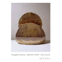 Presenting the Dada sound poetry of Hugo Ball (1886-1927) in concert with aggressively manhandled double bass seems like a logical endeavor for Smith, especially since Dutch voice artist Jaap Blonk is a somewhat regular visitor to Texas. In addition to being a highly theatrical free improviser, Blonk has performed and recorded the works of Ball, Tristan Tzara and Kurt Schwitters – including the latter’s elemental “Ursonate.” The six poems are bookended and split by three improvisations that, for the uninitiated, allow the sound poems to stand on their own. Despite their use of nonsense syllables, guttural noises, creaks and howls, the poems present as extremely specific work, even as an improvisation like “Interlude” feels comparable. Smith accompanies and goads in subtonal, brushy fiddling and hairy, stuttering masses with equal control, or plucks with grace and musculature as Blonk exhorts, cackles and ululates (the dusky “Caravan”). The presence of Smith’s detailed arco and explosive, physical harangues offsets the theatricality of the poems’ delivery to a degree, drilling their slate-cleansing absurdity into something romantic, concrete and immediate. Crisply recorded, the condensed textures of both wood and throat sound extraordinary, whether bashed about in “Dirge” or in more plaintive fragments. This set of poems and improvisations is truly a fantastic notch in both musicians’ already-deep catalogs. Spill is the long-running duo of Berlin-based pianist Magda Mayas and drummer Tony Buck, with three discs to their credit since 2008. In 2010, Smith joined the pair for an Oakland concert and recording session, which is now seeing its first release as Spill Plus. Mayas and Buck are a tough pair with a focused language of light, metallic nattering between them, the pianist heaping onto the strings and soundboard with clattering implements and toothy plucks, supplanted by a tensile latticework of cymbals and gongs. Smith isn’t quite as brusque here as with Blonk (though that’s a more recent disc), nevertheless choosing his own manner in which to obsessively stump and shepherd the pointillist volleys between hyper-keyboard and drums. Buck’s approach is reminiscent of John Stevens, with steadily ringing impulsions from which Mayas’ resonant whorls and jagged, dimmed chords jut. In an environment of hushed, obstinate accent and sharp diagonals, there isn’t really space for “release” but the threesome’s agitated interplay and gradual subterfuge are a bit more than mere texture. Again, it’s a very specific architecture this group presents, but it yields an array of active, colorful layers.