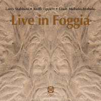 In the mid-1980s, Stabbins and Tippett played together as a duo as well as a trio with Moholo-Moholo. The group melded their collective backgrounds, from scorching free interplay to quiet, open lyricism to kwela groove. What is particularly striking about the trio is the way they could hold tension as they lithely moved between free lyricism and explosive exuberance. They recorded the FMP release Tern at the 1982 Berlin Total Music Meeting. Live in Foggia, recorded three years later, reprises two pieces from the earlier session in much-extended readings. The 45-minute “The Greatest Service” begins with the quiet shimmer of cymbals, a hushed melodic thread on piano, and Stabbins’ keeningly lyrical tenor. The three settle in, cycling through the theme and patiently building intensity. A third of the way in, Stabbins explodes with skirling potency, countered by Tippett’s cascading, stabbing flurries, opening to a solemn, three-way vocalization accompanied by a tranquil flute melody. Building from this calm, the improvisation ebbs and flows with sterling, attentive communication. In the final third, the improvisation builds from a loose groove, with Tippett’s inside-piano torrents, Stabbins’ circuitous soprano playing, and Moholo-Moholo’s sizzling pulse as the three collectively join in for a joyous kwela stomp which resolves into a simmering lyricism. The 27-minute “Shield” follows, starting with soprano and piano ostinatos fluttering over a repeated drum pattern. Cycling soprano lines and churning drums spur the piece into a scorching middle section. During the final third, they introduce a theme that hints at “Goodbye Porkpie Hat,” then takes off to an angular, stop-and-start conclusion. One of Stabbins’ earliest recordings was a 1976 duo with percussionist Roy Ashbury. Cup & Ring, a duo with drummer Mark Sanders, recorded in September 2024 revisits that context with a series of 11 compact duets. For this session, Stabbins plays alto saxophone, concert and alto flutes, and bass clarinet, with each improvisation focusing on a different instrument to carve out a specific sound space. The two lock in on each piece, homing in on a singular pace and trajectory and assiduously exploring it. The five “Cup” pieces are flute explorations buoyed by Sanders’ percussion, ranging from unhurried, doleful melodicism to fluttering spare solemnity. Stabbins’ full-toned playing is effectively matched with Sanders’ spare approach favoring toms and the metallic splash of cymbals. The three alto sax “Ring” pieces range from measured, open lyricism to stabbing, searing vigor, bringing out a more active attack from the drummer. The three bass clarinet “Ring” pieces serve as a foil to those on alto sax and flute, with Stabbins mostly sticking to the lower registers of the horn. These are the most conversational with a casual back-and-forth though they tend to meander a bit. One welcomes Stabbins’ return to playing and one looks forward to seeing where he will continue to take things.
