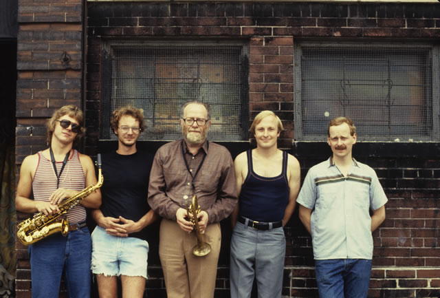 a column by ![]() Hal Russell NRG Ensemble, 1981 ©Ann Nessa 2012 Hal Russell passed away twenty years ago. Tempus fugit indeed. I didn’t know him personally, really, I only interviewed him once, although I saw and heard him play I don’t know how many times, in Chicago and Victoriaville and Berlin, in lofts and art galleries and basement bars and concert halls, and anyway I suspect if you knew Hal’s music, you knew the man. There was no artifice, no posturing, no gamesmanship. Whatever his personal life was like, when he was performing his exuberance exploded out into the audience, often carrying the rest of the band along with him, though he was typically twenty-some years older than each of them. He would have made a great con man, because despite the dynamism of his music, behind a deceptively gruff-looking exterior he was so unassuming and sincere, but with perhaps just a touch of the carny in him. And he had a wry, self-effacing, incorrigible wit that manifested itself in his band’s surreal antics, along with his off-hand, satirical stage demeanor; I remember once during a rapturously received concert in Canada, he announced “And now ladies and gentlemen, here’s another tune that we hope you will enjoy, if that’s possible.” (I think he meant it.) On the front cover of his CD Albert’s Lullaby (Southport) is a photo of Hal, grey-bearded, in suit and tie, at one of the Jazz Institute of Chicago’s annual Jazz Fairs, seated behind a table, selling homemade cassettes of his concerts from a cardboard box labeled “Old Hal Russell! Get It Here! Very Old!” And then there’s the title of his musical ode to Halloween, “Hal the Weenie.” It was in the 1970s when, after a long career as a professional musician – with all of the ups and mostly downs that the phrase “professional musician” implies, drumming in big bands and theater pits, for dances and weddings, only on a rare occasion getting the gig in a local rhythm section to back up the touring Miles Davis (they were the same age) or Sarah Vaughan for a night – he once again picked up the trumpet he had set down thirty years earlier (learned of necessity in college, because the University of Illinois didn’t allow a percussion major back then) and, inspired by Albert Ayler, decided he wanted to play tenor saxophone too. So, in his 50s, Hal Russell plunged headfirst into the maelstrom of free jazz. It wasn’t totally unprecedented. In the early ‘60s, he had latched on to a bassist with interests in modern classical music and the occult, Russell Thorne, and an open-minded Chicago saxophonist, Joe Daley, and together they became one of the first American groups to reflect Ornette Coleman’s controversial inside-out perspective. (Their only album, The Joe Daley Trio At Newport ‘63 (RCA), was, title notwithstanding, at least partially recorded in the studio, only partially indicative of the band’s adventurous nature, and – to date never having been issued on CD – is as rare as a Republican at Bruce Springsteen’s birthday party.) But so far the primary evidence we have of his all-out commitment to unfettered improvisation is from 1979: Elixir by Russell’s Chemical Feast (first issued in 2001 by critic-turned-art-gallery-owner John Corbett’s Unheard Music Series), a riotous, rousing display of conceptually designed freedom and joyous abandon, featuring names that fell into the cracks of history (whatever happened to saxophonist Spider Middleman or promising vibist George Southgate?) and one, Mars Williams, who is to this day an enduring – hell, ferocious – representative of the Russell legacy. Williams’ own radical vision and reed expertise was forged in part from youthful studies with Anthony Braxton and Roscoe Mitchell, and as their neglected, seismological duo LP from 1981, Eftsoons (Nessa) shows, he shared with Hal a love of improvisational daring and extravagance. Their paired saxophones suggest bagpipes and jet engines, evoke dinosaur roars and satellite static; when Russell chimes in on vibes or his patented Sonny Murray-meets-Gene Krupa drumming they are an NRG Ensemble in microcosm. It was only his successful forays with ‘80s rock bands The Waitresses and Psychedelic Furs that prevented Williams from appearing on the initial NRG recordings. The first official NRG album, also from ‘81, newly reissued on Nessa, is a glorious showcase for the band’s instrumental talents and illuminates the deft balance between the compositional and intensely intuitive sides of Russell’s music. The personnel was put together through years of trial by fire. Two bassists, Curt Bley and Brian Sandstrom, provided churning rhythmic momentum, and Sandstrom added tart trumpet riffs and sorties (and later, squawking guitar commentary). Steve Hunt, a thoughtful, potent drummer and crisply vibrant vibist, alternated with Hal on both instruments. Chuck Burdelik’s animated, incisive saxophone solos were an emphatic foil to Hal’s Ayleresque C melody sax excursions. In addition to the drums, vibes, and saxophone, Russell threw in some shenai, cornet, and zither. What continues to impress today, and in fact makes the music sound newly minted, is the thoughtful, variable shaping of the extended pieces. “Uncontrollable Rages” and “Linda Jazz Princess” are constructed with dramatic textural and expressive contrasts, emphasizing shifting instrumental colors, terraced dynamics, and unpredictable solo viewpoints. ”Lost Or?” and “C Melody Mania,” two long cuts included from a previously unreleased earlier session, are looser in design, but concentrated in expression. This is free jazz with a focus and an alluring attitude. Though they received only a few offers to record during the ‘80s, Russell continued to issue some of his most ambitious works on self-produced cassettes. One such release, Hal On Earth, first came out in 1989 but was reissued on CD in 1995 by the Abduction label. Other, cruci
