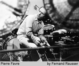 The percussion solo utterly alters the terms of solo improvisation, since many percussion instruments have complex pitches that resist melody and harmony. On the other hand, the development of the trap-drum kit in the late 19th century, along with its continuing principle of expansion and combination, resulted in tremendous potential for rhythmic complexity and sonic variety. In Favre’s drumming, polyrhythmic practices, drum tuning, the ceremonial drumming of Japan and innumerable folk traditions all appear, sometimes in relative isolation and sometimes coming together in long pieces that develop both distinctly and in synchronicity. There’s a sonic poetry, a kind of absolute clarity in which Favre’s considerable technique and his collection of instruments never get in the way of a kind of will to clarity. It’s already present on Drum Conversation and it develops steadily to Mountain Wind, even as the individual pieces get progressively longer on each CD and the fascination with sonic textures stretches to a Balinese grace. There’s a series of pieces in Abanaba that particularly demonstrates the range of techniques. “Kkatybaby” might be as close to speech phrasing as drumming can get, Favre starting out stating a relatively simple phrase, though with detailed inflections of pressure and pitch. He will then repeat the phrase, shifting instruments, pressing in more notes, making the pattern more complex and allusive, until slowing it down reducing it to an absolute clarity and finality. In contrast, the next track “Kyoto” is concerned absolutely with a kind of ritual of space, isolated sounds of gong and woodblock and wonderfully hollow pitch-eliding, shimmering, almost theremin-like, sounds. The recording emphasizes a sense of space, suggesting that Favre is somehow in touch with instruments spread over a thirty-foot span. That sense of breadth takes on different significations with each new piece. “Roro” focuses on polyrhythmic tom-tom work and may suggest a village in the Congo or Eddie Blackwell (or Gunter “Baby” Sommer in this complex and on-going love affair of central Europe for central Africa). The sonic focus of “Gerunius” embraces scraped metal, light gong touches and a beautiful metallic resonance that somehow suggest the theatre has become internalized, a kind of mental wonderland in which sounds arise with an hypnotic delicacy. The next piece “YesYes” is doubly affirmative, seeming to insist that the psychic world and the village circle are one – beginning and ending in isolated sounds and hollow metal resonance and embracing polyrhythmic density in the middle of the piece. These sonic and rhythmic adventures arise and conjoin throughout the three discs with a consistent pattern of development on many fronts. The final track on Mountain Wind, “Alexis Cadillac,” is as spare, concentrated and speech-like as drumming might become. It’s significant work, certainly, but more than that, it remains insistently pleasurable listening over forty years after Favre launched his solo improvisation project. |