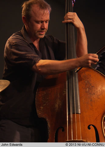 It’s hard to say whether it’s ambitious or sheer madness to launch a new label by organizing a 3-day festival of British Free Improvised Music in Berlin and then documenting it with a deluxe 4-LP boxed set on 180g vinyl, including a booklet of essays and interviews and a lushly produced festival booklet. Throw on top of that, the fact that the planned follow-up is a feature-length documentary retracing the history of free improvised music in the UK. The whole thing was dreamed up when Luxembourg-based film director Antoine Prum became friends with Tony Bevan while working on Sunny’s Time Now, Prum’s documentary about Sunny Murray. The two worked out a plan for the festival, collaborated with Total Music Meeting producer Helma Schleif, and lured a multi-generational group including pioneers Lol Coxhill, Eddie Prévost, Trevor Watts, and Phil Minton; second generation British free players Bevan and Steve Beresford; stalwarts John Edwards, Mark Sanders, and Orphy Robinson; musical experimenters Rhodri Davies, Gail Brand, Alex Ward and Matthew Bourne and a handful of musicians just hitting their 30s who are starting to make a mark including Dominic Lash, Tom Arthurs, and Shabaka Hutchings. The sixteen musicians convened for three days in October 2011 for the twenty-two sessions of ad hoc duos, trios, and ensembles, many of which are documented on this 4-LP set. Any undertaking like this, invites questions and second-guessing: Is there any meaningful notion of a national approach to improvisation? In the booklet that accompanies the boxed set, Wolfgang Seidel grapples with some of these issues, tracing the improvisation scene in Great Britain back to the fifties and sixties, with a generation of musicians including Coxhill, Watts, Prévost, Minton who had come up through formative encounters with jazz balanced by exposure to innovations of composers from Schoenberg to Stockhausen to Cage. By the seventies and eighties, improvisers like Beresford, Sanders, and Edwards were intermingling improv, situationist theater, and home-made electronics, setting the stage for intersections with punk and Rock Against Racism in the eighties. Musicians coming up now, like Dominic Lash, can be found playing free improv in a group like The Convergence Quartet one week, and performing compositions by the Wandelweiser Collective the next. All of this history draws convenient lines to triangulate on, but the music produced by this cross-generational group manages to simply ignore it altogether, instead looking for overlaps, sometimes playing to common strengths, and sometimes playing to the contrasts. Eschewing regular groupings, the diverse combinations work like a kaleidoscope of constantly morphing permutations. And while free collective interaction provides the foundational starting point for these pieces, it is intriguing to hear a willingness to allow line, lyricism, and even an open sense of time enter in to the mix. Listen to the way that Alex Ward and Lol Coxhill kick things off on their duo as Ward’s lithe clarinet playing bobs across Coxhill’s burred flutters and smears which dip in and out of bop-like phrasing. The duo performance by Coxhill and Prévost takes this to a masterful level as Coxhill moves in and out of lyrical free melodicism and skirling freedom against the drummer’s punctuations which toy around the edges of open shuffle and skewed pulse. There is a casual economy to their playing, revealing their deep collective musical experience at every turn. Coxhill and Prévost are joined by Trevor Watts, John Edwards, and Phil Minton for a probing quintet that transforms the traditions of the instrumental roles in thoughtful ways. Edwards resonant bass becomes an anchor here, providing a sonic fulcrum for the snaking, intertwined reeds, Minton’s vocal acrobatics, and Prévost’s pinpoint percussive shadings. The five ratchet things up to dense torrents, pull back for boisterous spatters of ping-ponged activity, finishing off with a torrid burst of energy. Compare that to the brashness of a quintet with Ward’s slashing electric guitar, Shabaka Hutching’s garrulous tenor, Tom Arthurs’ fillips of trumpet, Mark Sanders’ jump-cut percussion, and Edwards’ resolute bass anchor. The group moves in and out of muscular physicality and spare collective interplay, dropping to a burred whisper two thirds of the way through their 20-minute set only to charge off into caterwauling density. A quartet with Rhodri Davies, Orphy Robinson, Trevor Watts, and Mark Sanders shows yet another take on ensemble playing by utilizing a particularly unexpected juxtaposition of musicians. I’ve not heard Davies’ play in a context like this, but he and Robinson gel to hang string/vibes resonances against Sanders’ scrapes, pops, and sputters which Watts plays off of, his keening, vibrato-rich reeds charting its way with peripatetic inventiveness. In contrast, a quartet with Bevan on bass and soprano saxes, Hutchings on tenor along with Edwards and Sanders sounds almost traditional, starting out with keening reed cries over bass arco and percussion chatter and building with waves of propulsive energy. And while the trajectory ebbs and flows, particularly in an open section toward the end where the form opens up for revolving focus across the ensemble, one can hear the specter of free jazz in the interactions of the two horn players with bass and drums. The sets of trio interactions included provide a different lens for group interaction. A trio with Davies’ harp, Hutchings’ clarinet, and Dominic Lash’s bass is a study in compact timbral exchange as the sharp attack and hanging resonance of harp, the woody reverberations of plucked bass, and the warm chalumeau clarinet lines crisscross with laser focus. A trio with Beresford’s oscillating electronics, Bourne’s bent-note inside-piano playing, and Arthurs’ hissed and fluttered trumpet flits along in fits and starts, eschewing linear progr