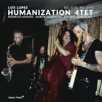 Very much of the pleasure of this CD comes from two American eel-yellers, bassist Aaron and drummer Stefan Gonzalez. The ballad “She” is quiet enough to showcase Aaron. He’s unamplified, he loves the true sound of the bass, but probably like most bassists between such strong drums and tenor, he doesn’t project well. His lines are active and lyrical and his senses of free rhythmic movement and tonality match Lopes’ instincts – a bit of nice strings duetting. Otherwise, from beginning to end the album is filled with the percussion of Stephan, who suggests the dynamism and freedom of his former percussion associate Alvin Fielder. It’s a thick, rich layer of sound that propels the others while remaining responsive, as in passing duets with Amado. The opening piece “Eddie Harris/Tranquilidad Alborotadora” is longest and shows Stephan, Amado, and Lopes at their best, with lyrical passages by Amado and quiet guitar fireworks.