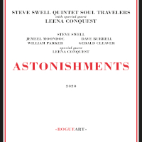 Her presence is explained by Swell’s inclusion of two pieces with free verse texts commissioned by Tom Buckner’s Interpretation Series in 2006 and 2017, which Conquest declaims in her wonderfully rich voice, halfway between speech and song. The title track celebrates the unlikelihood of quotidian events as well as giving a litany of fallen comrades. The musical accompaniment is anything but every-day, as a swirling rubato of bowed bass, piano droplets and drum scuttle gradually gels into a ticking groove, anchored by the sort of muscular bass riff for which Parker is renowned. Swell conjures a similar effect on “Being Here,” with a seething ensemble which opens for Moondoc’s beseeching outing, his finest of the date. The four purely instrumental numbers furnish a variety of settings for individual expression, which can be heard not so much as solos, although there are some of those too, but more as group interplay in which different members take turns in the foreground. In fact, on “Sketch #7,” Burrell plays more during Moondoc’s feature than he does in his own. Indeed, Burrell’s idiosyncratic fare, with his contrasts between ringing depths and a spidery treble which flirts with stride and ragtime, constitutes one of the big plusses of the set. Swell builds his structures from a mix of involved unisons and simple reiterated phrases, but creates sufficient variety to challenge his starry roster. The responsive mesh of Burrell’s piano, Parker’s elemental gestures and Cleaver’s multidimensional percussive chatter adds intensity and nuance to the program. “The Seldom Heard” moves from a drifting rubato into a loping canter, a shift repeated for each soloist, producing a lovely juxtaposition of Moondoc’s blues-infused astringent cry and Burrell’s sweeping glissandos at one juncture, while the punchy “For Mondays” shows off the leader’s rollercoaster lines, which float, pause, and quicken, as shouted asides and upper register flourishes pepper his gruff potency. But it’s that collective strength, which finds its greatest expression on “Morphogenesis”, where the horns and piano revel in the sort of loose polyphony which comes as second nature to these guys, which remains the essence.