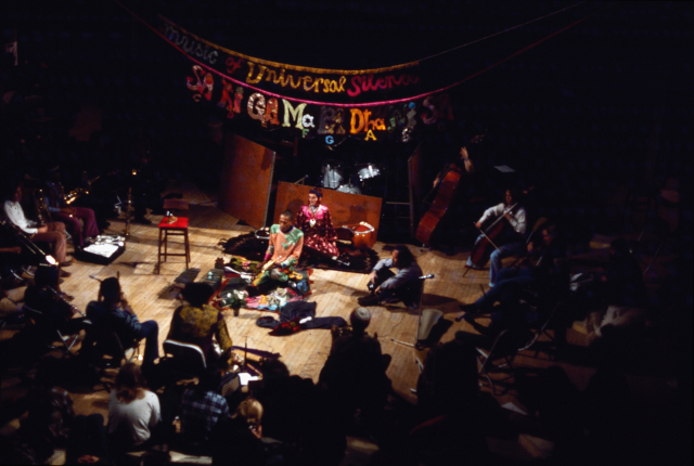 Cherry occasionally camped in one place long enough to design and build an edifice. Half a dozen times in this period, he ballooned his open concept to work with large clusters of improvisers from around Europe. But when Cherry was commissioned to write for the JCO in 1970, there was still very little on tape – and nothing on record – to indicate how he would use a large group. In Sweden he had built something special, but that specific magic was shared with US audiences on only a few occasions, of which “Relativity Suite” is the key example. If the piece were to be staged as new work today, the promotional copy would subtitle it an “experience”: not so much a program of songs as an evolving ritual, an engulfing wave that upsets our senses of form, genre, and the passage of time. Cherry’s presentations in the early seventies were all about that sort of experience. The album Relativity Suite was a portable souvenir of that experience, like the folio of postcards brought back from a vacation: vivid, well-focused pictures of some natural phenomena, captured from a closer point of view than you’d be able to get from a trail. But freezing those frames sacrifices the panoramic experience of being present in the biosphere. On the LP, catalog number JCOA 1006, there are clearly compartmentalized pieces built around individual soloists; the melodies and choice of instruments clue us in to the sources animating Don Cherry’s musical catalog. Cherry was always hungry to learn about the world’s musical cultures – this spirit would later lead to his adopting a “Multikulti” brand identity for his band and its records. It is difficult to isolate the different musical traditions that inspired Cherry. Broadly speaking, at the start of the seventies he was exiting a period characterized by the influence of Turkish music. In Relativity Suite, South Asian music is paramount. It’s the obvious referent in “Trans-Love Airways” and the opening track “Tantra.” Then comes East Asian music, as played by Selene Fung on the Chinese zither ching (or zheng) in “The Queen of Tung-Ting Lake.” The title of the second track, “Mali Doussn’gouni,” refers to an instrument from Mali, also spelled donso ngoni, that was Cherry’s latest fascination. (More on that later.) Cherry learned much from the musicians with whom he performed. He was captivated as well by sounds from Brazil and South Africa, each interest sparked by a musician from those countries. Brazilian Naná Vasconcelos was very much a part of Cherry’s European vision at this time; he was even part of Cherry’s workshop at NYU (though absent from the record). What Cherry learned from the South African pianist Abdullah Ibrahim, also known as Dollar Brand, is as complex as a double helix, but Ibrahim’s compositions and folk tunes had an immediate effect. Since Relativity Suite was commissioned to be Don Cherry’s music, he left Ibrahim’s songs out of the picture, but we still get a remarkable cameo from an Ibrahim collaborator, the alto saxophonist Carlos Ward, on “Desireless,” a short track showcasing Carla Bley’s piano playing. As much as we now understand how essential Ward was for Ibrahim and Cherry, going into the Relativity Suite project, his history was more closely entwined with the JCOA than with either of them. The other featured saxophonist on the album, Frank Lowe, also stuck with Cherry for years to come. Lowe and Cherry met no later than when Cherry was a guest observing the September 1972 sessions for Lowe’s Duo Exchange (Survival Records, 1973) with Rashied Ali. Lowe’s rasp and fire were cast in the role pioneered by Albert Ayler and Gato Barbieri as the complement to Cherry’s lead voice. The record concludes with “March of the Hobbits,” showing off the New Orleans parade chops of Ed Blackwell with a blithe, bulletproof melody reminiscent of Albert Ayler. It’s the first song on the concert’s set list. It had played passim across Cherry’s musical oeuvre and surfaced in performances with Ibrahim and elsewhere, at least as early as 1968. The concert version of “Relativity Suite” has much in common with the one on the record, but pieces of the composition are arranged in a different order, played for longer or shorter lengths, and repeated more often. At least one of the recurring themes from the performed version was left off the recording. On the LP, individual tracks have names and timings; start and end points are clear. On side B, there are even spirals – the physical separators visible on the disc – to delineate the tracks. Much of the ensemble playing on this project came from the standard personnel of the Jazz Composer’s Orchestra. The Orchestra had grown out of the Jazz Composer’s Guild, for which Carla Bley and Michael Mantler had written in 1964–65. Their aim was to unify the Guild’s players into an orchestra that would feature members of the greater group as soloists and, eventually, to commission some of those same figures as composers who would write for the whole orchestra. Bley and Mantler maintained remarkable momentum on their live and recorded projects, with each feeding into the work of the other through the early seventies. They launched the JCOA label in 1968 and eventually developed that into a business framework called New Music Distribution Service. By the early 1970s, the principle had broadened such that the JCO could be the vehicle for records by affiliated musicians, including Clifford Thornton, Roswell Rudd, Grachan Moncur III, and Leroy Jenkins, and for shorter and longer commissions from composers not steadily part of the organization: Sam Rivers, Bill Dixon, Alan Silva, Wadada Leo Smith, and others. “Me and Mike were just asking our favorite players if they wanted to write a piece,” Bley recalled, “and I think they all said ‘yes’ ... I think Don was the first person we asked. ... The Jazz Composer’s Orchestra paid for it;