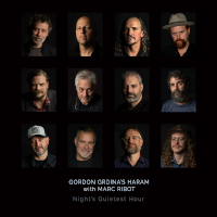 Oddly Enough came about during Covid lockdown. At the outset of the pandemic, Berne sent Grdina a new piece for solo guitar, who sent back a recorded interpretation. That back and forth continued for almost a year before there was enough material for an album. In contrast to his solo efforts, Haram is Grdina’s most ambitious project to date. Grdina founded Haram in 2008 to further develop his work with traditional Arabic and Iraqi folk music in cooperation with several Vancouver-based improvisers. The 12-piece ensemble employs ancient instruments like ney (end-blown flute), darbuka (goblet drum) and riq (Arabic tambourine), as well as an array of brass, reeds, strings, and percussion. Night’s Quietest Hour, the follow-up to Her Eyes Illuminate, the group’s 2012 Songlines debut, features Ribot as invited guest soloist, who joined the ensemble in Vancouver for a pair of concerts and a recording session in early 2020, shortly before the onset of the pandemic. Comprised of three pieces written by Arabic composers (Kevser Hanim, Salah Ben Al Badiya, and Ahmad Al Jaberi) as well as two traditional tunes, Haram’s sophomore effort evokes sweeping Middle Eastern modalities, much like Amir ElSaffar’s Rivers of Sound Orchestra. The set opens with the hypnotic “Longa Nahawand.” Ribot and Grdina (on oud) play stirring variations on the central motif while various members solo and interact. The unwavering backbeat of “Sala Min Shaaraha A-Thahab” provides a solid foundation for the impassioned vocals of Emad Armoush and ample space for Ribot, whose raw, punk rock aesthetic imbues this cut – and the rest of the proceedings – with vim and vigor. The leader’s dexterous oud playing is featured prominently on the traditional “Dulab Bayati,” while different musicians interweave throughout the ensemble sections. The lush opening of “Lamma Bada Yatathanna (When She Begins To Sway)” provides a brief respite, until “Hawj Erreeh (Violent Wind)” closes the album on a rousing high note. Cohesive and evocative, Night’s Quietest Hour is a seamless fusion of Middle Eastern melodies, compelling ensemble work, and impassioned solos that will transport attuned listeners to another time and place.