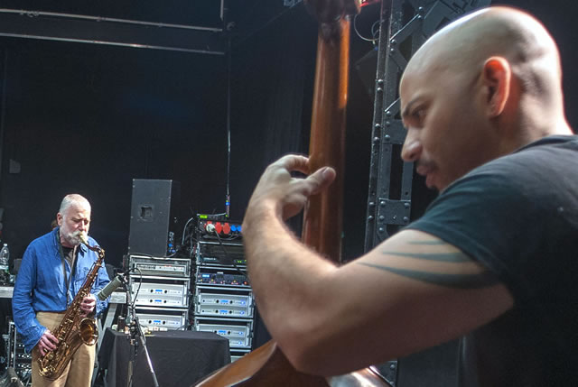 by ![]() Peter Brötzmann + Eric Revis ©Gérard Rouy 2013 Bassist Eric Revis first came to prominence supporting Betty Carter in the mid-1990s, shortly after completing formative studies with Ellis Marsalis at the University of New Orleans. Since then, Revis has become a key figure in the creative mainstream: as a stalwart member of Branford Marsalis’ Quartet; part of the collective trio Tarbaby (with pianist Orrin Evans and drummer Nasheet Waits); and a sideman to neo-traditional artists like JD Allen, Russell Gunn and Winard Harper. Released on Portugal’s Clean Feed Records, Parallax is his third effort as a bandleader, following the eclectic Laughter’s Necklace of Tears (11:11 Records, 2009) and Tales of The Stuttering Mime (11:11 Records, 2004), which offered colorful demonstrations of the bassist’s expansive compositional palette, featuring such unique instrumental sonorities as melodica, string quartet and washboard. Equally diverse, yet far more adventurous, Parallax is the debut of his 11:11 quartet – a virtual summit meeting of contemporary talent – featuring Revis, Waits and the drummer’s primary employer, pianist Jason Moran, performing alongside Chicago scene leader Ken Vandermark. Revis is no stranger to such vanguard company; although often found supporting straight-ahead players like Lionel Hampton, Billy Harper and McCoy Tyner, Revis toured with Peter Brötzmann in 2009, serving with Waits as the renowned German firebrand’s dedicated rhythm section. Bolstered by longstanding relationships, Revis’ studied rapport with Waits in Tarbaby and Waits decade-plus membership in Moran’s Bandwagon trio provides this particular lineup with a deep sense of camaraderie far greater than the average super-group. The quartet’s efforts encompass a wealth of inside-outside dynamics, seamlessly bridging the tenuous divide between traditions. The members’ shared enthusiasms for the stylistic nuances of prewar jazz draw a striking parallel to the genre-defying innovations of the AACM, most notably on stirring covers of Fats Waller’s “I’m Gonna Sit Right Down And Write Myself A Letter” and Jelly Roll Morton’s “Winin’ Boy Blues” – riotous interpretations that find aesthetic concordance in the equally raw, albeit cohesive collective improvisations “Hyperthral” and “IV.” Though spontaneously conceived, the intense focus of the latter pieces confirms the ensemble’s adroit interplay; Vandermark’s husky tenor refrains, Moran’s bustling two-handed runs and Waits’ careening downbeats effortlessly interlock with the leader’s pneumatic fretwork, lending the rhapsodic proceedings a wholly unified sensibility. The diverse cast also enables Revis an opportunity to showcase his burgeoning compositional style, as exemplified by sophisticated ensemble numbers like the contrapuntal march “MXR” and opulent tango “Edgar.” His refined writing also informs his virtuosic solo technique, readily demonstrated by the ruminative bass soliloquies “Prelusion” and “Percival” – the former regaling with dervish-like arco, the latter blistering pizzicato. Rounded out by stellar pieces written by his peers, including the rhythmically daunting “Dark Net,” penned by saxophonist Michaël Attias, and Vandermark’s sole contribution, the scorching free bop swinger “Split,” Parallax embodies a truly diverse microcosm of contemporary jazz styles. Intrigued by the album’s expansive continuum, I interviewed Revis in the winter of 2012. **** Troy Collins: When comparing your sideman discography to the lineup featured on Parallax, the personnel seems a little surprising. Jason Moran and Ken Vandermark are widely revered for their creative virtuosity, but also for their leadership abilities in their respective metropolitan scenes; Moran in New York and Vandermark in Chicago, respectively. Can you explain how you managed to get these two leaders together as sidemen in a quartet setting? Eric Revis: It was actually a pretty easy process. I called Nasheet, Ken, and Jason and asked them if they wanted to do a gig I had in NYC. Luckily everyone was available and the gig was great. TC: Where was the gig held and did the set feature any of the tunes included on Parallax? If so, how have those pieces changed since their initial conception? ER: The gig was at The Jazz Gallery in NYC. I believe we did the Fats Waller and Jelly Roll tunes on the gig and we played them pretty conventionally. As we did more gigs, I realized that when given the opportunity to document the band, this was a group I could take advantage of exploring the possibilities of the tunes I had been composing. All of the tunes other than the aforementioned songs on Parallax were brought in at the date. TC: One detail that makes 11:11’s personnel a little less startling is your time spent touring with Peter Brötzmann. Can you describe how that gig came about and how it may have influenced 11:11, if at all? ER: I have been a huge fan of Mr. Brötzmann for a long time. In ‘04-‘05 Nasheet and Peter were doing a series of dates as a duo. Around that time Nasheet and I were on the phone just catching up with each other and he mentioned that he and Peter were doing these shows and would be performing at the now defunct Tonic. I told him about me being a big fan of Peter and that I would definitely be down to see them. He told Peter about this and they actually invited me to do the gig. A year or two later I saw Peter in Austin, TX and he mentioned that he enjoyed the trio gig and that he’d been thinking about doing something with it. That resulted in a tour of that trio a year later and it was on that tour that I met Ken. TC: Vandermark is well known for paying homage to a wide variety of artists, many of them musicians, but not all of them associated with jazz. As an artist with an equally eclectic background based in funk and rock music, how does that analogous aspect influence your writi